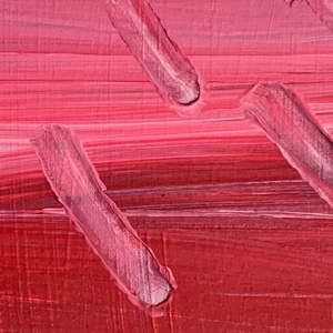 Rich purple and red tones combine to give a sense of mounting dread at the impending apocalypse. Dynamic slashes across the centre of the canvas evoke a meteor shower or crashing spaceship. Yet the overall effect is still one of peace, as though somehow the inevitability of the oncoming storm liberates the viewer from earthly concerns.